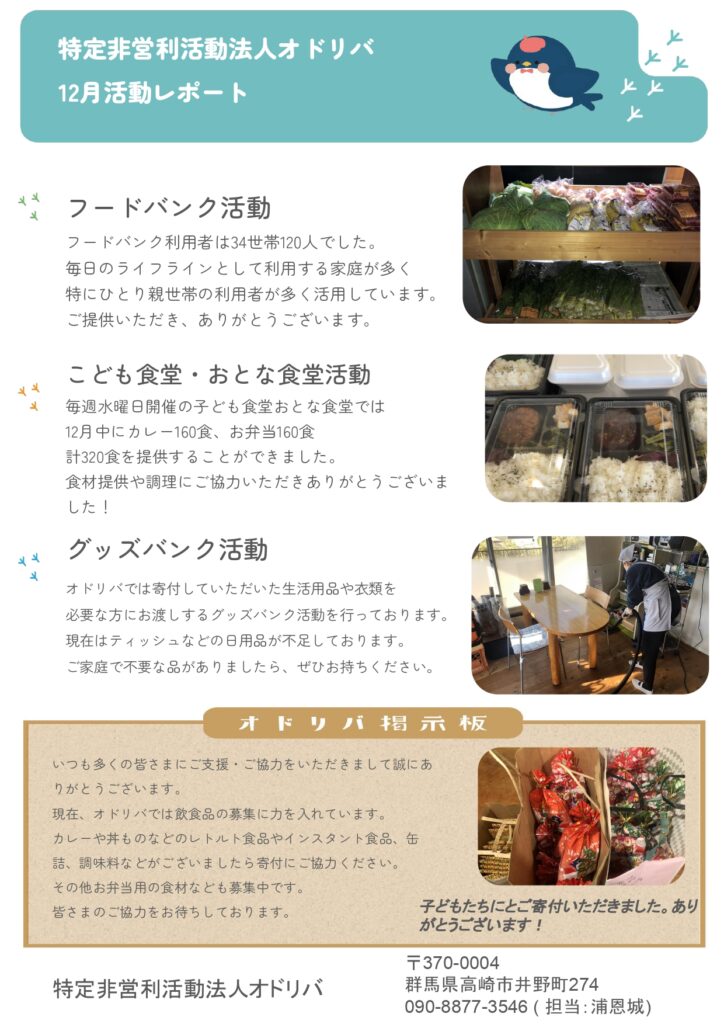 12月の活動報告が完成しましたので掲載いたします。